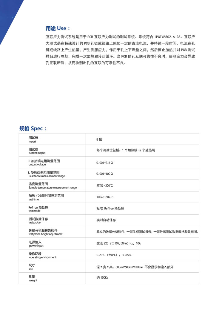 上海柏毅IST互連應力測試系統滿足IPC-TM-650 2.6.26要求,主要特點有: